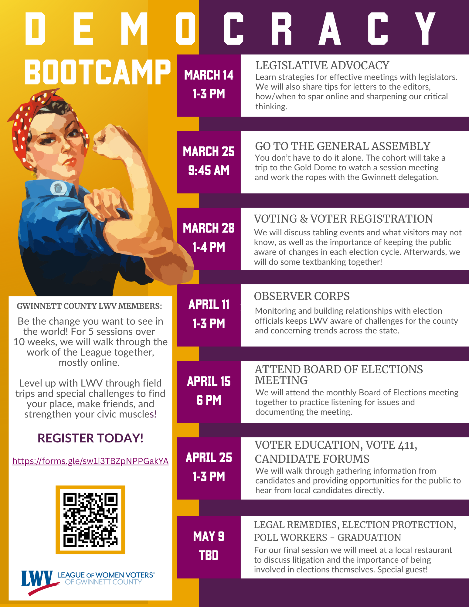 We ask that participants be paid members of Gwinnett LWV. If you were thinking about joining the League of Women Voters of Gwinnett - now is the time! Visit https://portal.lwv.org/membership to become a member.